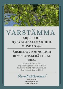 Vårstämma för Arjeplogs Nybyggesallmänning. Klockan 18.00. Lokalen öppnar 17.30.